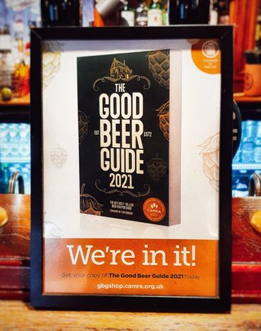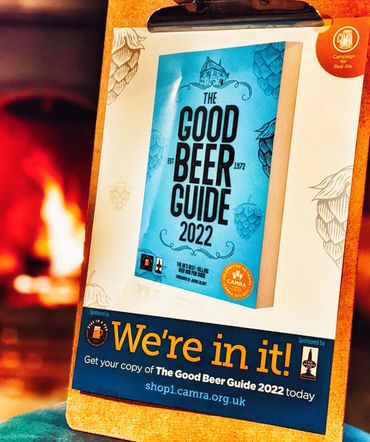 We're also listed in the CAMRA Good Beer Guide 2022. Out of more than 50,000 pubs in Britain, only 4,500 (just 9%) of the finest outlets for real ale are chosen for inclusion in the Good Beer Guide. Pubs in the Guide are chosen by local CAMRA members who go through a rigorous process to ensure only the best pubs are selected.